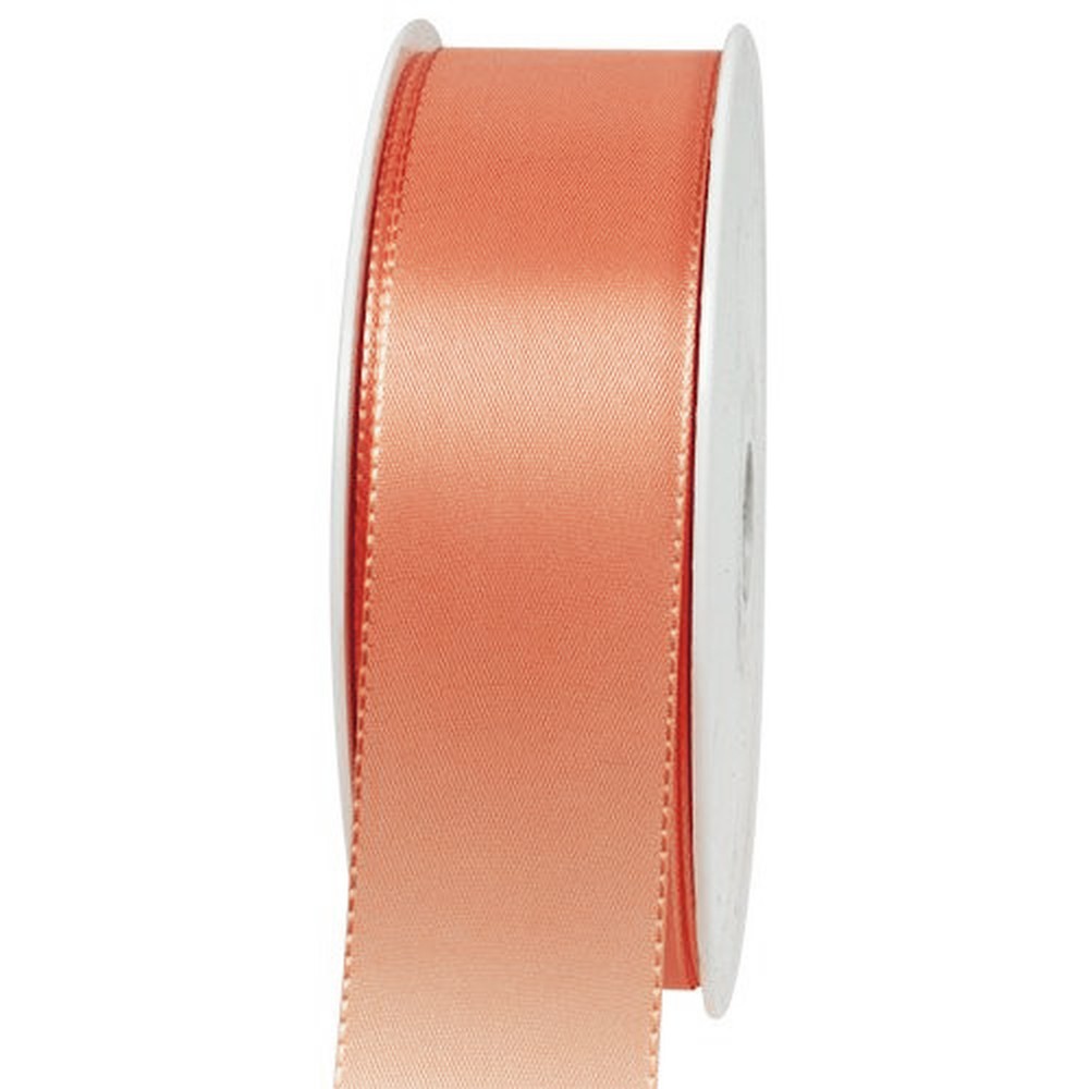 The apricot gift and decoration ribbon, made of 100% polyester, measures approximately 50 meters in length, regardless of the width. It comes on a practical plastic spool that can be easily attached to a dispenser.