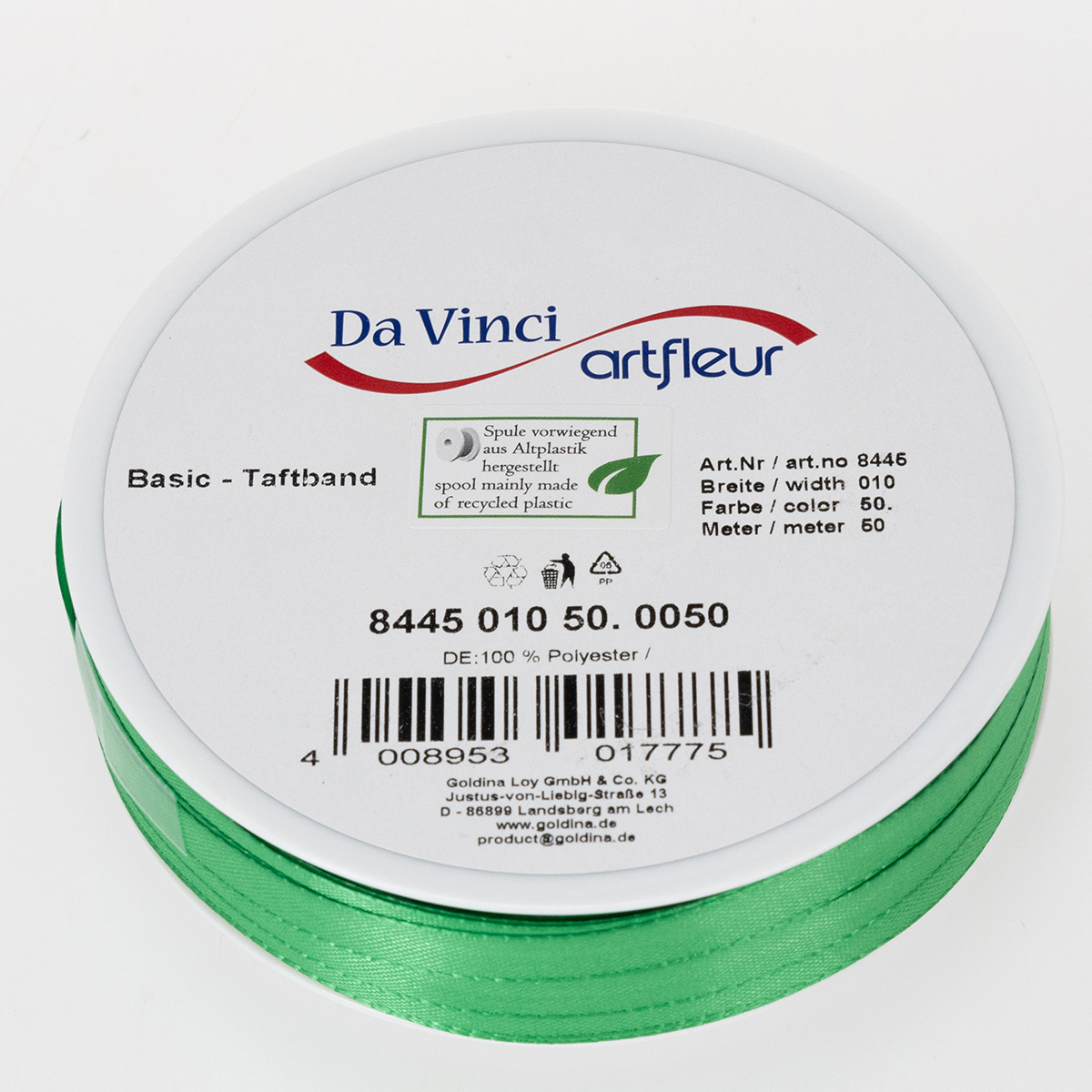 Product name: Gift and decoration ribbon, green taffeta ribbon, 10mm wide, 50m long