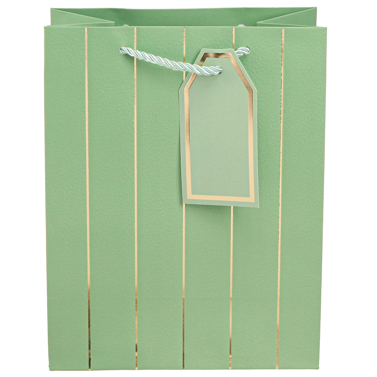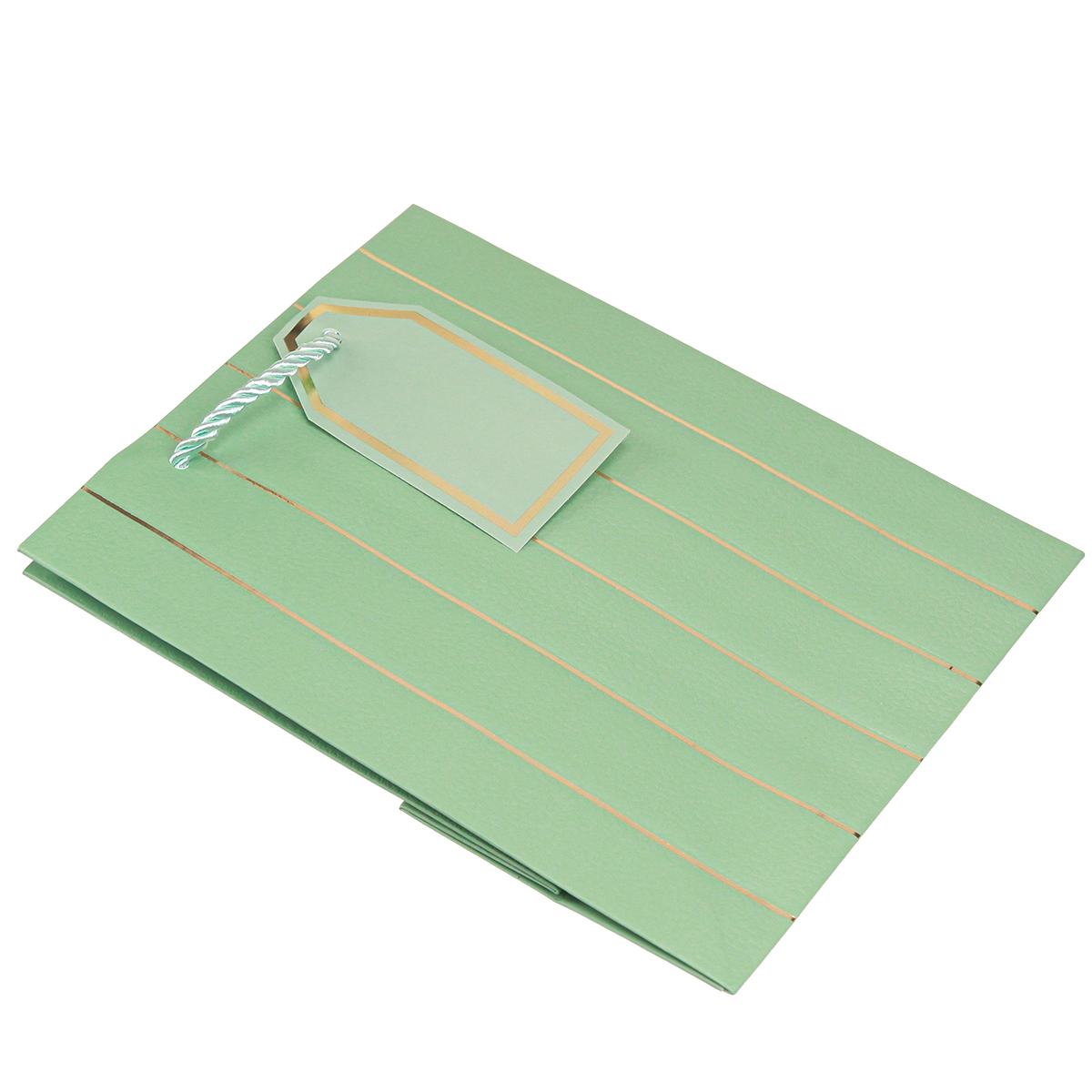 Gift Bag Light Green Golden Stripes 18×10×23cm 1 pc