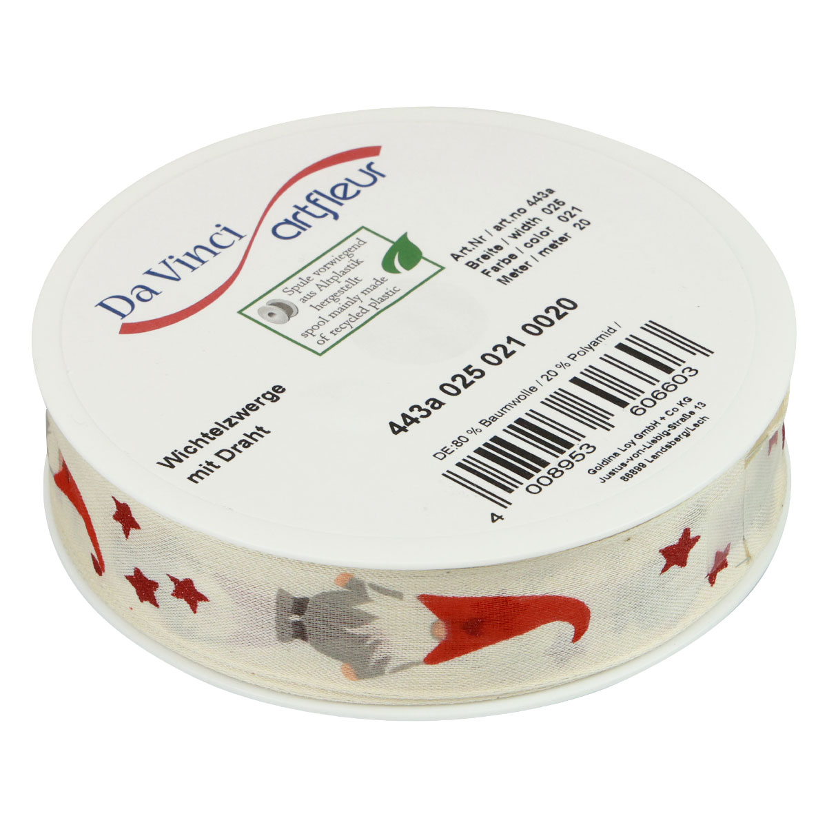 Product name: Gift ribbon Christmas ribbon gnome cream 25mm 20m