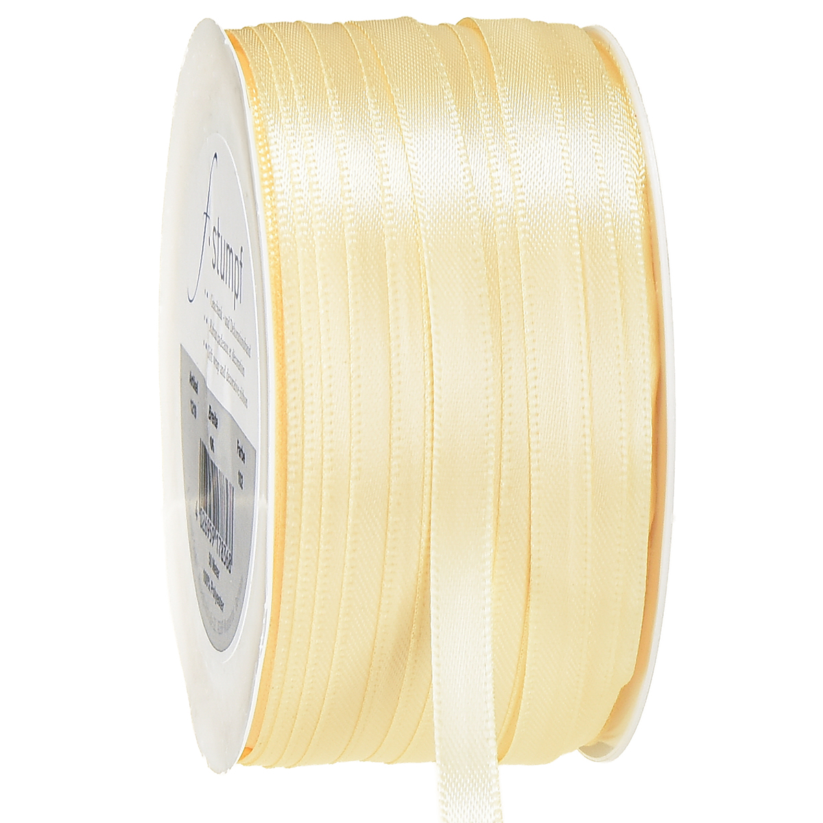 Made from 100% polyester, the cream-colored gift ribbon is approximately 6 millimeters wide and approximately 50 meters long and comes on a handy, small plastic spool. This can be easily stored in a drawer or craft basket.