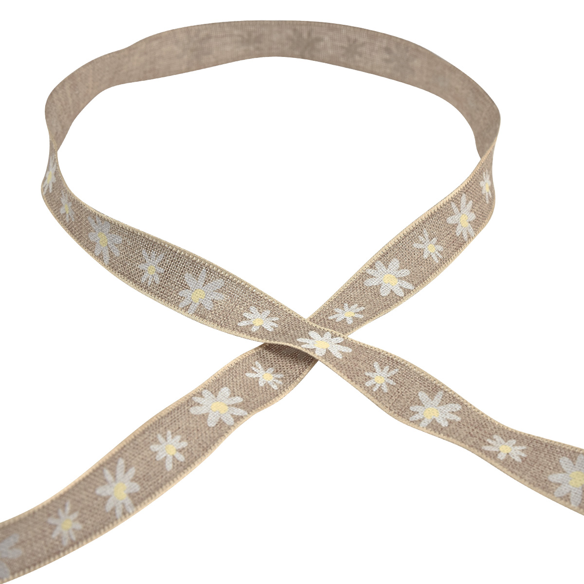 Gift ribbon flowers brown white decorative ribbon 15mm 15m