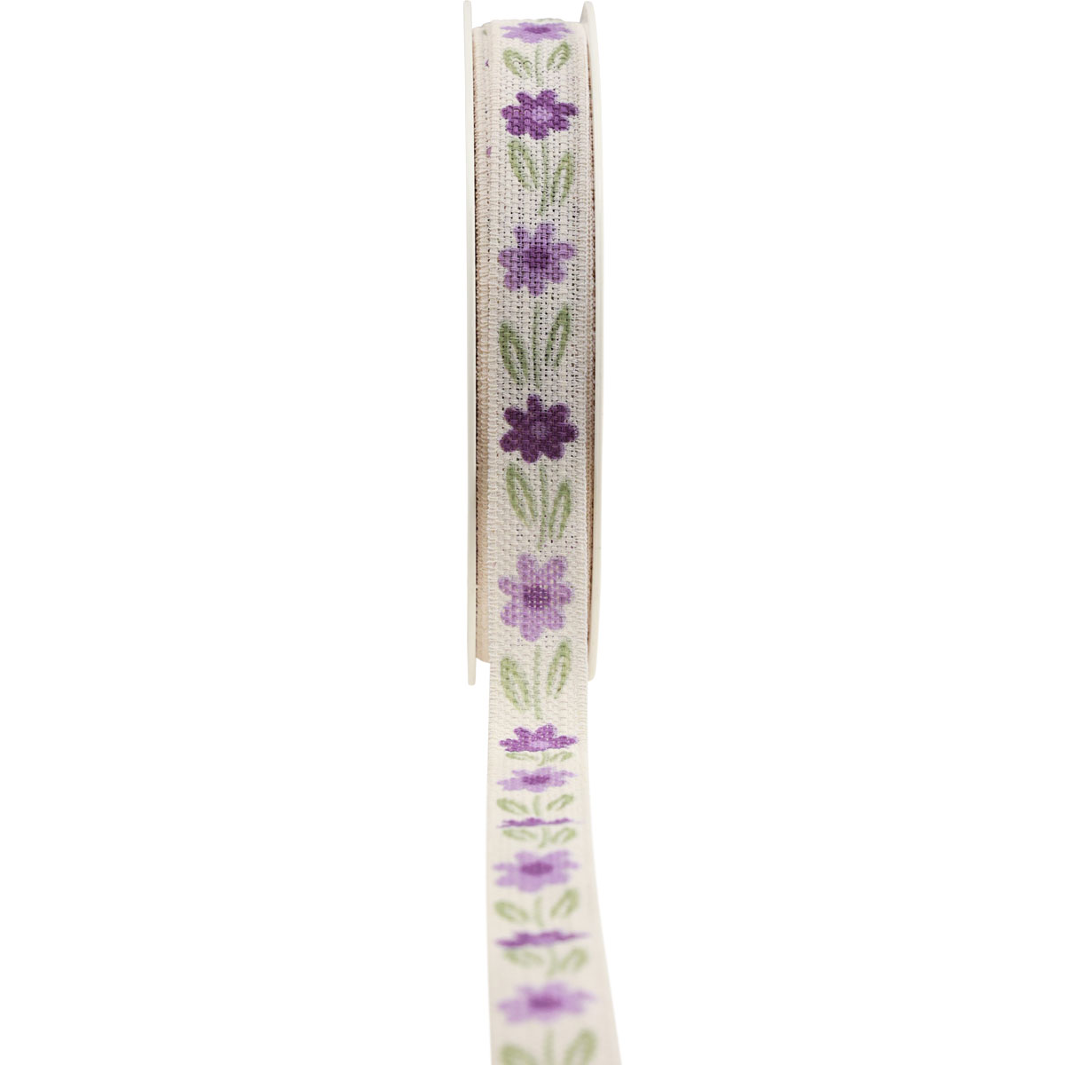 Gift ribbon flowers cotton ribbon purple white 15mm 20m