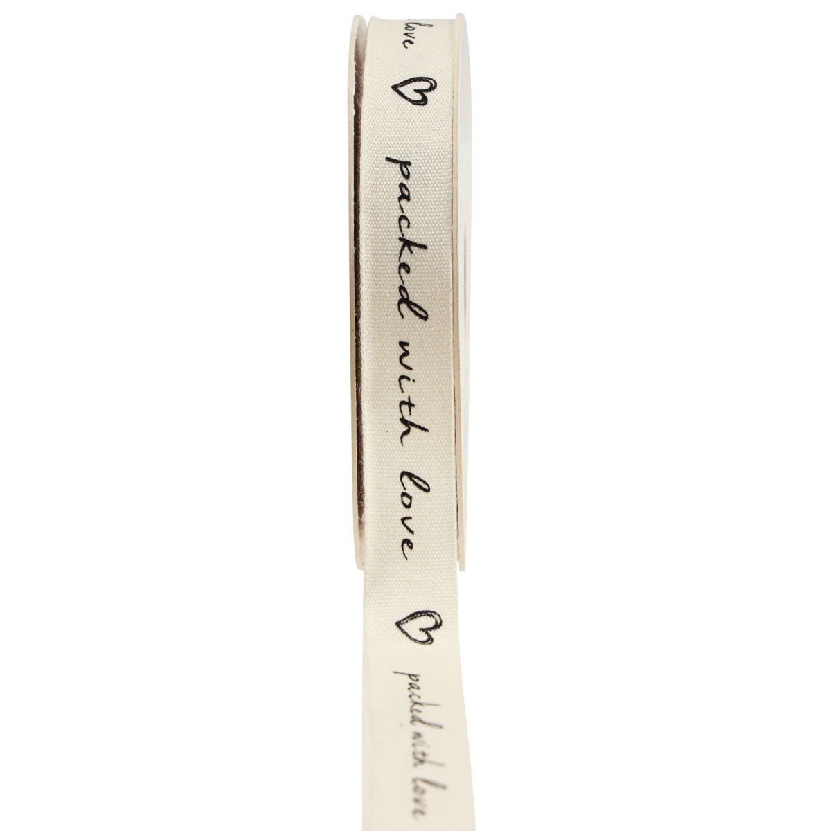 The ribbon made of pure, cream-colored cotton is printed with the inscription “packed with love” and hearts and definitely conveys the message to the recipient that your gift comes from the heart. The gift ribbon is on a cardboard spool which, like the ribbon itself, is biodegradable. This is how sustainable decoration works!