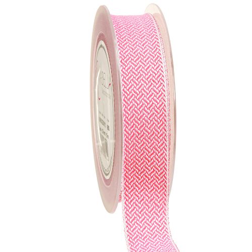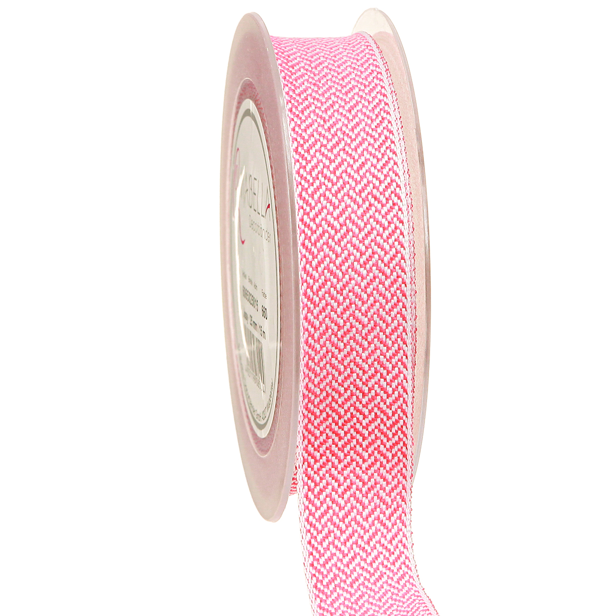 Gift Ribbon Herringbone Pattern Ribbon White Pink 25mm 15m