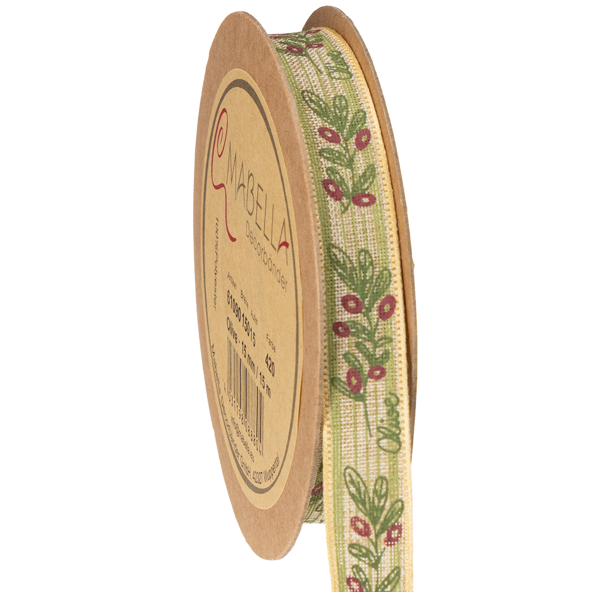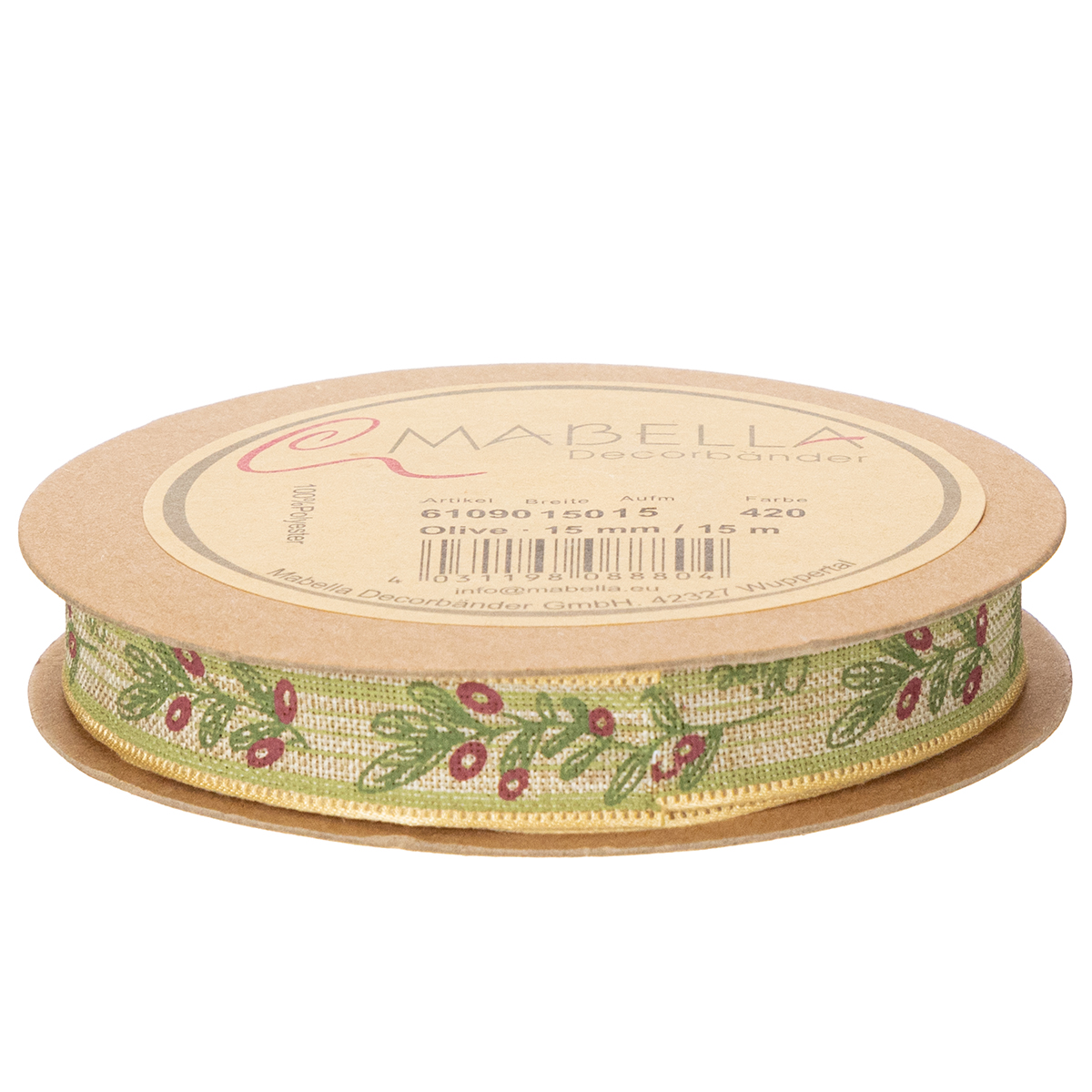 Gift ribbon olive branch with elegant branches and olives 1.5cm 15m