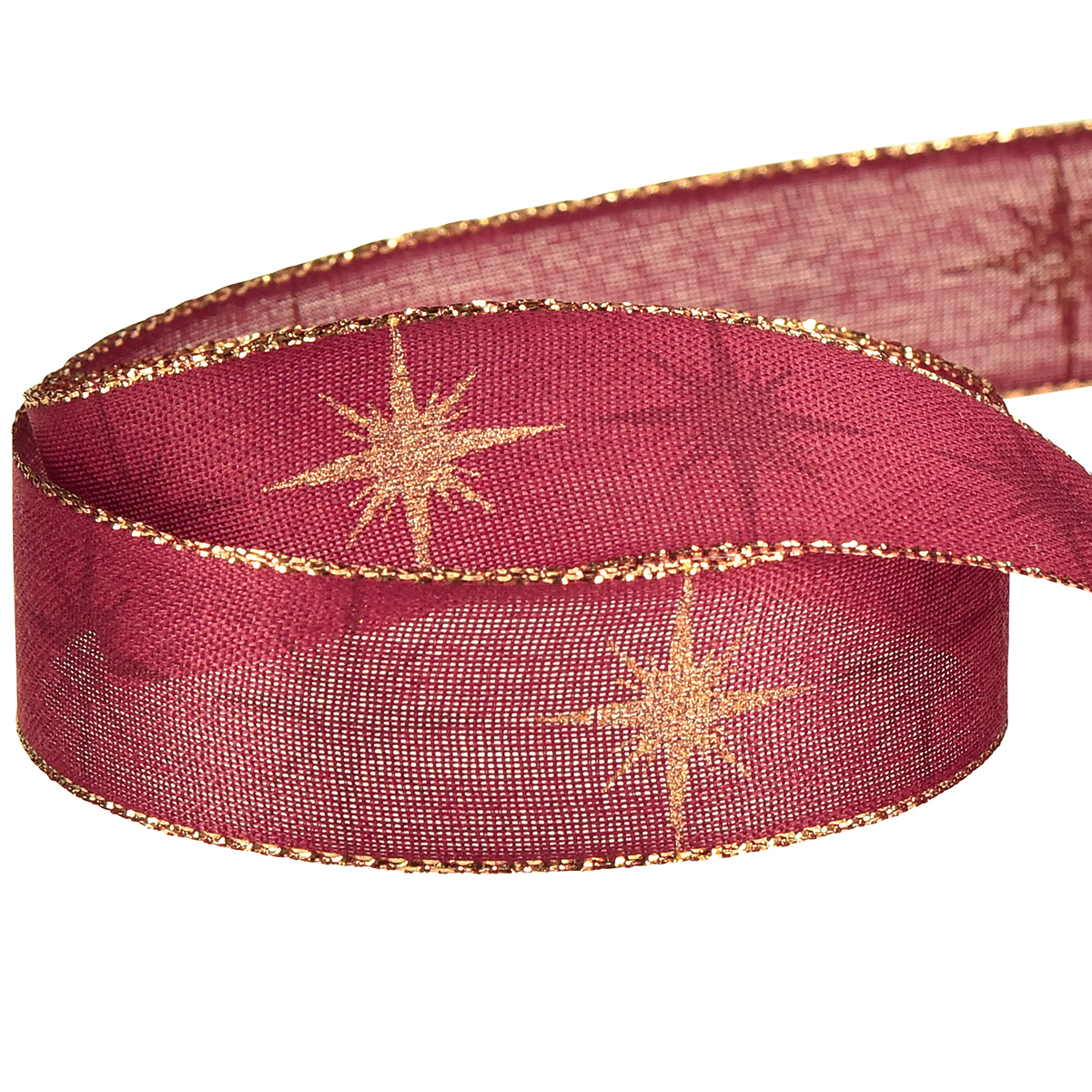 - Red ribbon with gold and dark red stars for festive shine