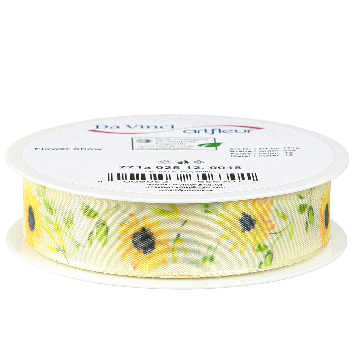 Product name: Gift Ribbon Sunflower Silk Ribbon Yellow 25mm 18m