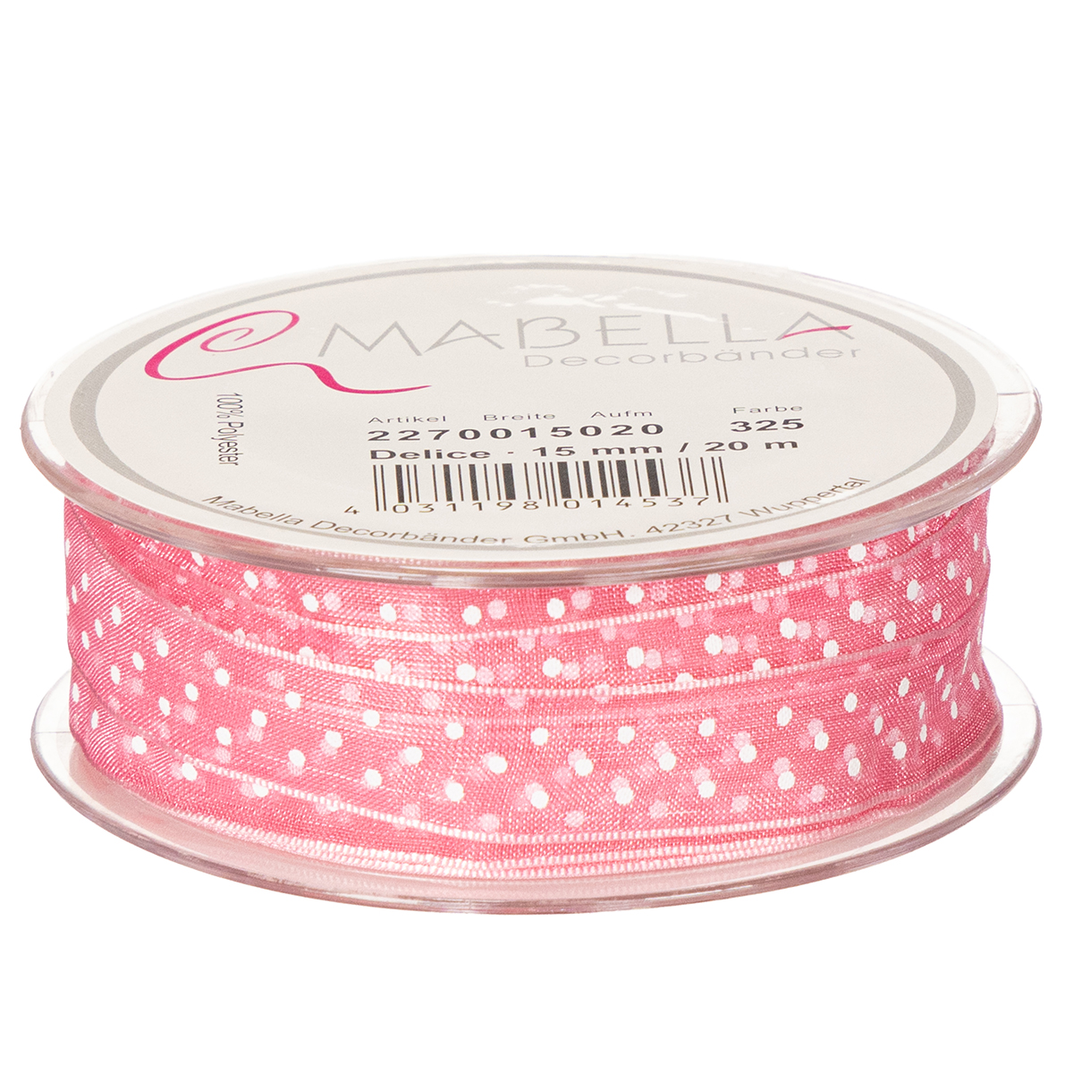 Gift ribbon with a stylish polka dot design for festive packaging, 1.5cm wide, 20m long