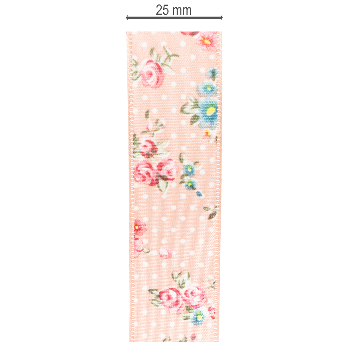 Gift ribbon with floral pattern for playful gifts and crafts, 2.5cm wide, 15m long