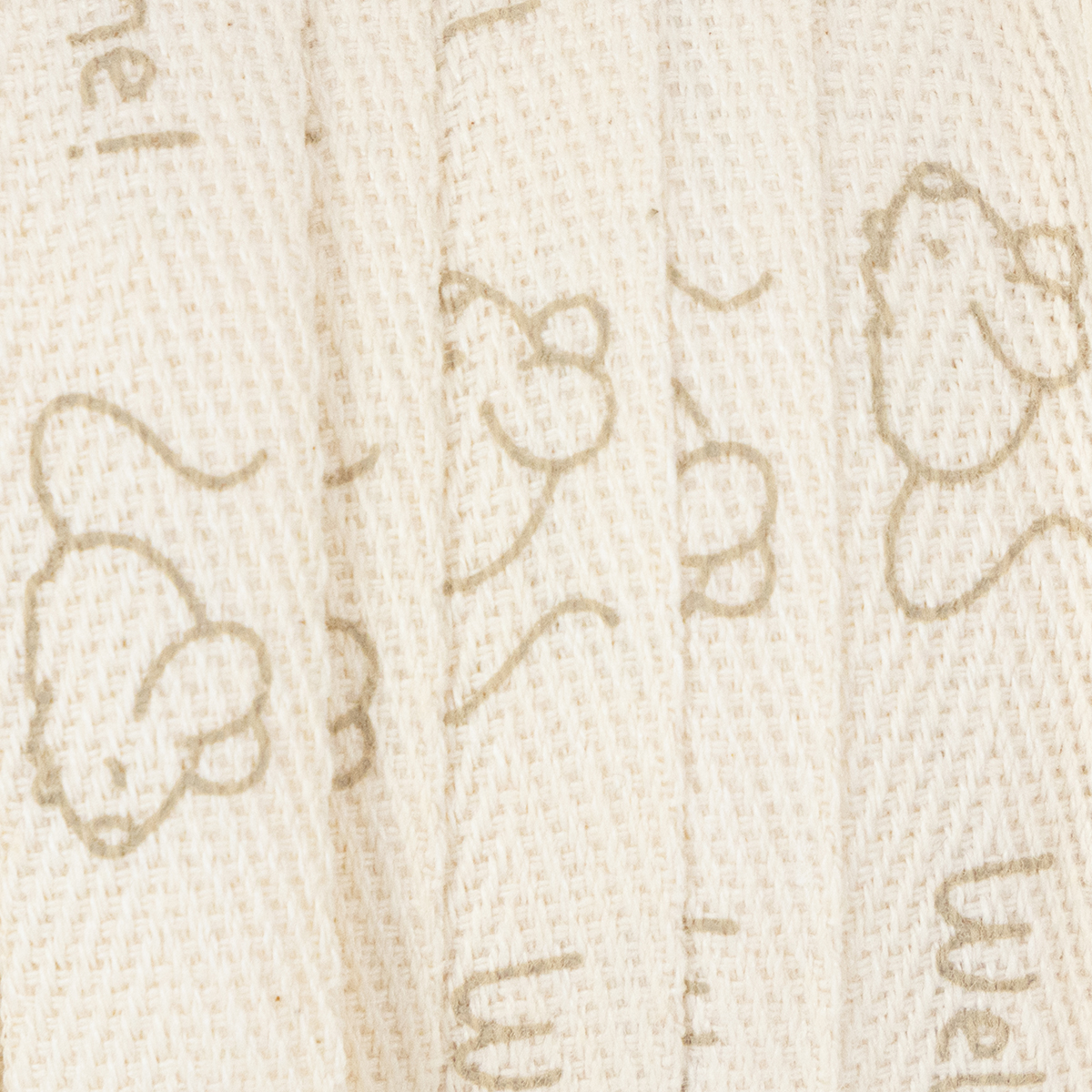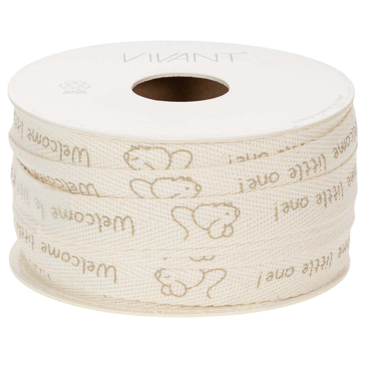 Curious mice and the greeting “Welcome little one!” are printed in light brown on the cream-colored band made of pure cotton. The decorative ribbon made from the natural material cotton is biodegradable and is on a cardboard spool for more sustainability. This means that the baptism decoration does not require any plastic.