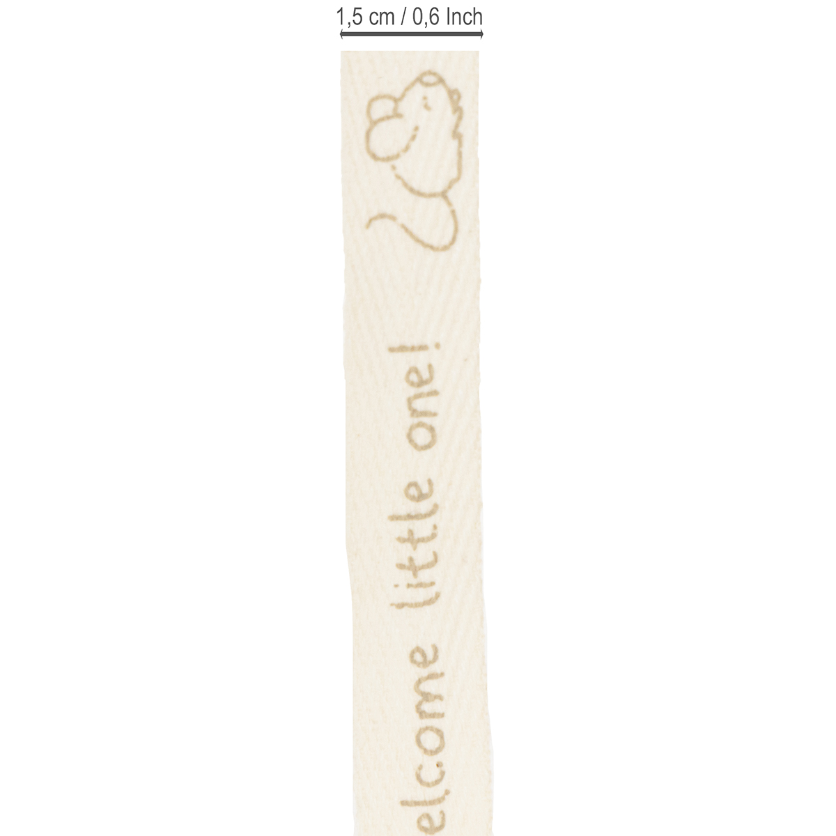 Well, who does the little mouse on this gift ribbon welcome so warmly? – The cotton ribbon is a cute decorative ribbon for births and baptisms!