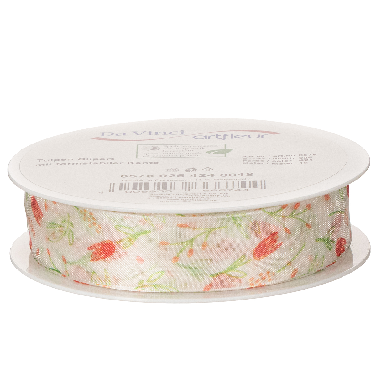 This gift ribbon impresses with its romantic tulip pattern and excellent material quality. At 18 meters long and 2.5 cm wide, you have plenty of ribbon to unleash your creativity. Whether used for gift wrapping, as a decorative bow on vases, or as a table decoration, the tulip motif harmonizes beautifully with the subtle color variations and high-quality polyester texture. It creates a particularly harmonious and appealing look when combined with spring flowers like daffodils or tulips.