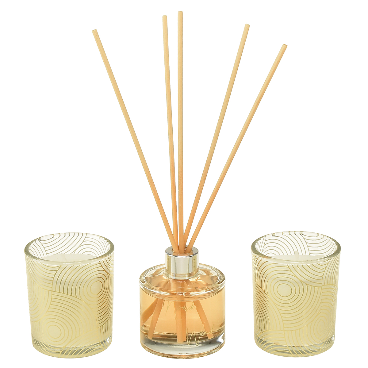 The set of room fragrance sticks and scented candles with a vanilla note is ideal for giving as a gift or decorating at home, in the hotel or for facilities in the wellness area.