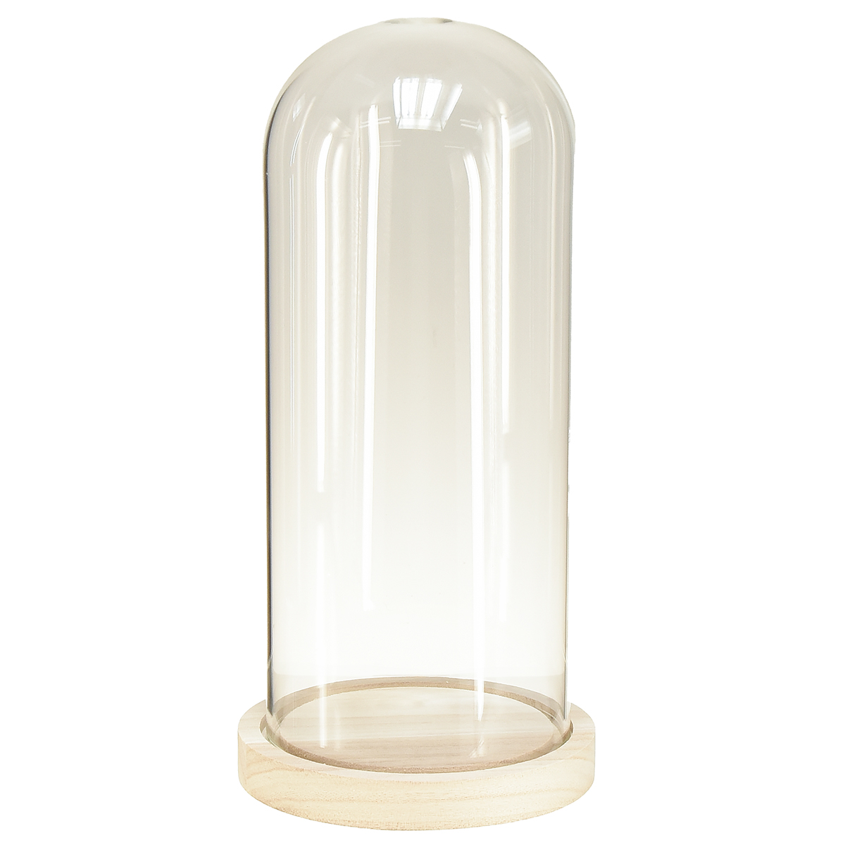 Glass dome glass bell with base wood clear Ø14cm H28,5cm