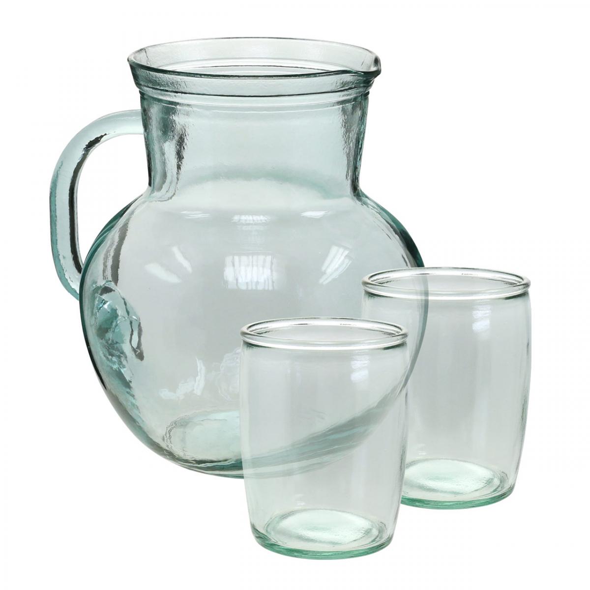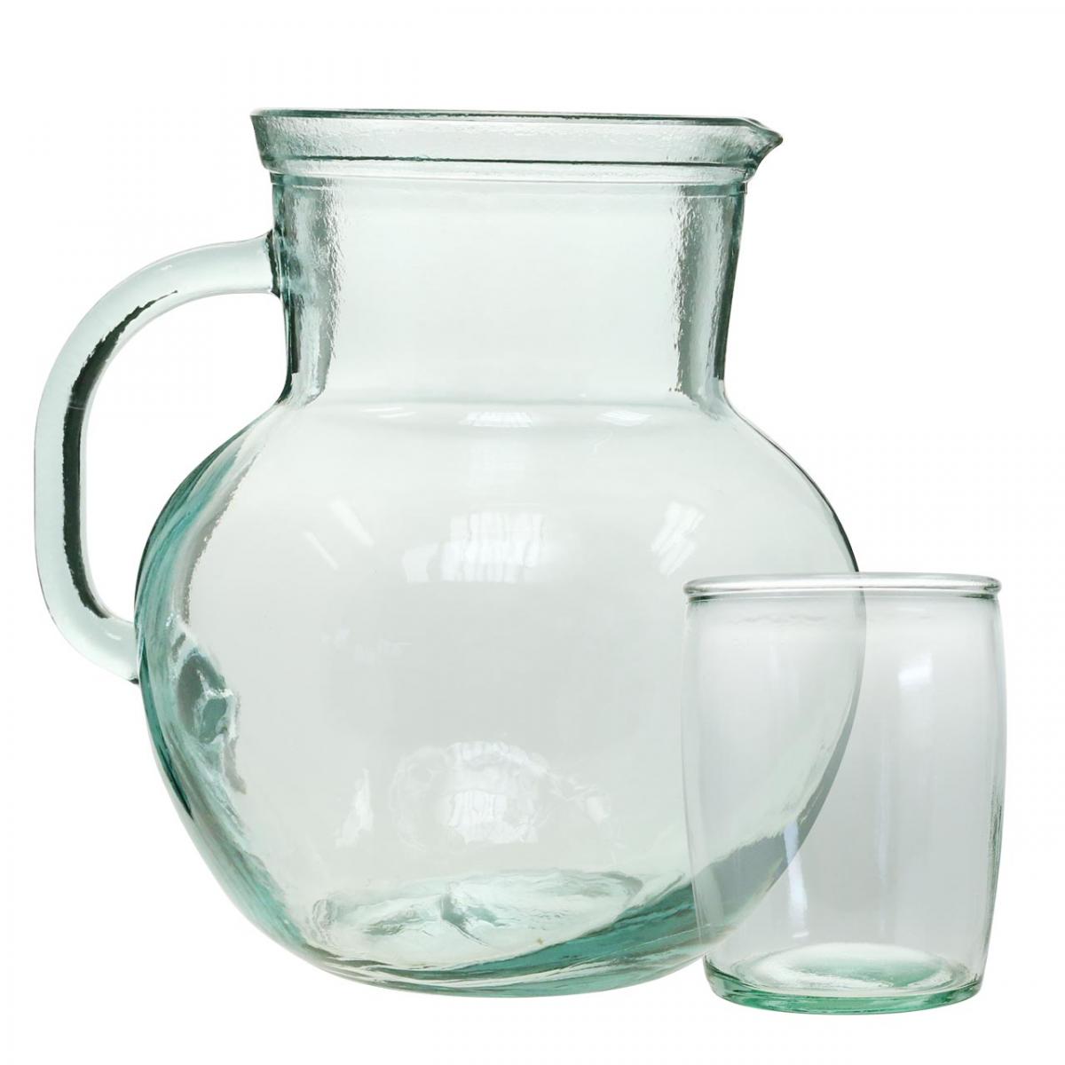 The glass jug comes in a set with four mugs in a pretty outer packaging. The glass set is also perfect as a gift!