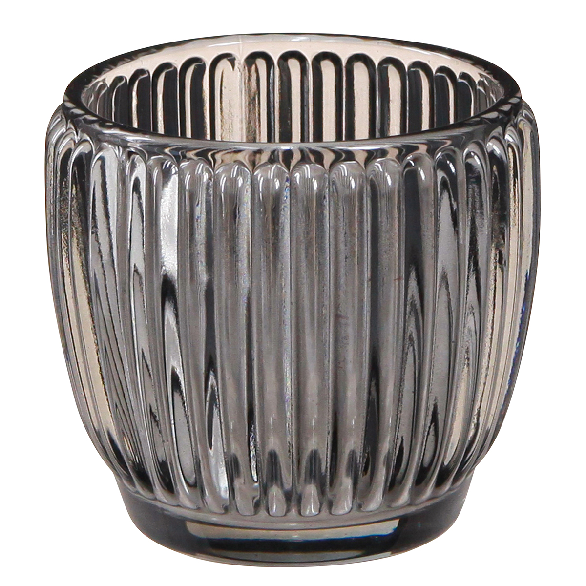 The grey glass lantern combines retro charm with modern accents and is a must for anyone looking for a stylish candle holder. With a diameter and height of around 7 cm each, it fits perfectly into any table decoration - whether in a classic or modern setting. Thanks to the grooved structure in the glass, an enchanting play of light is created when the light from the candle shines through.