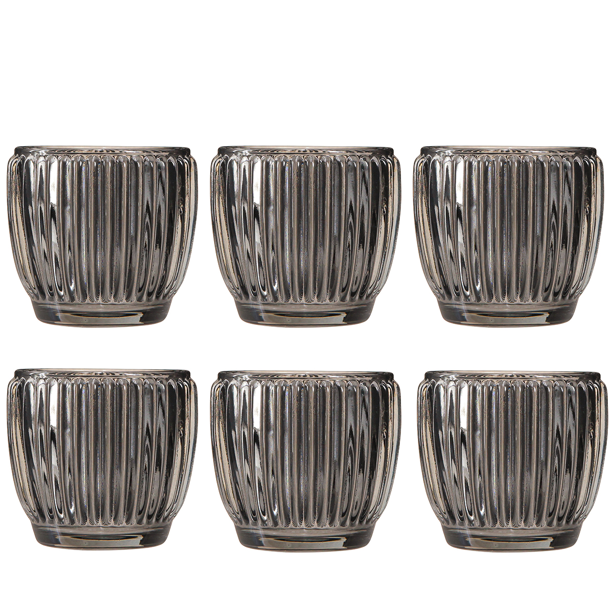 Glass lantern in grey autumn winter Ø7cm H7cm 6 pcs