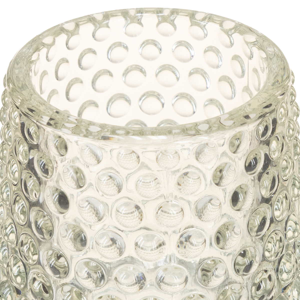 Glass tealight holder with base dots and grooves H15cm 2pcs