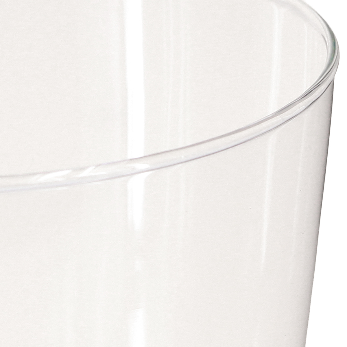 The clear, conical vase is approximately 20 centimeters tall. The diameter at the top is approximately 10 centimeters, while the base has a diameter of about 6 centimeters.