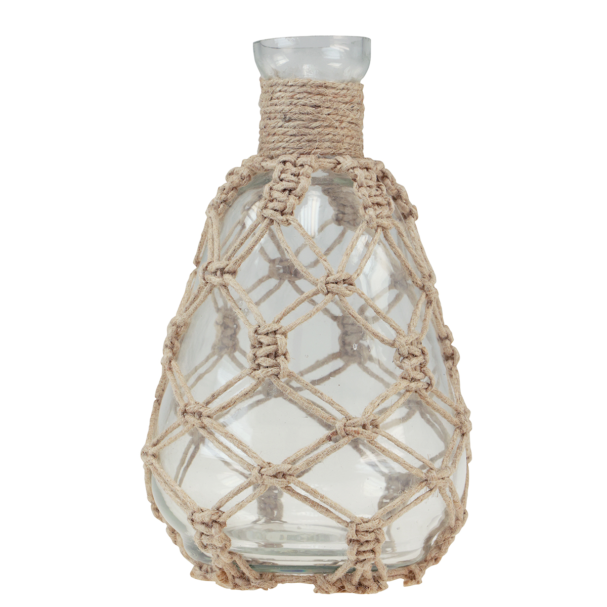 Glass vase macrame jute natural summer maritime Ø11cm H19.5cm