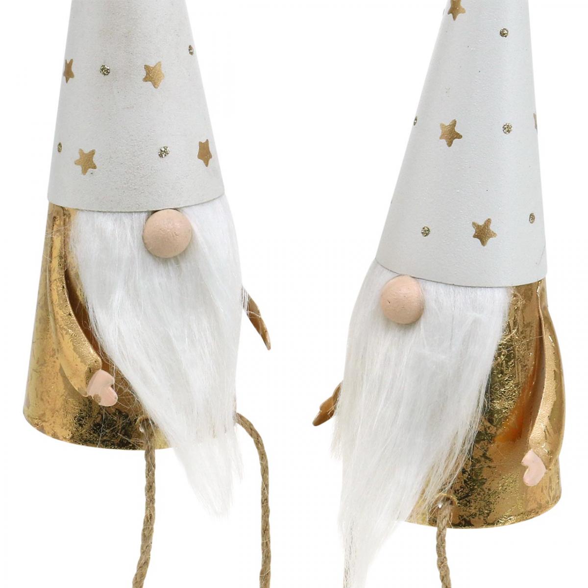 Gnome Christmas Decoration Figure White, Gold Ø6.5cm H22cm 2 pcs