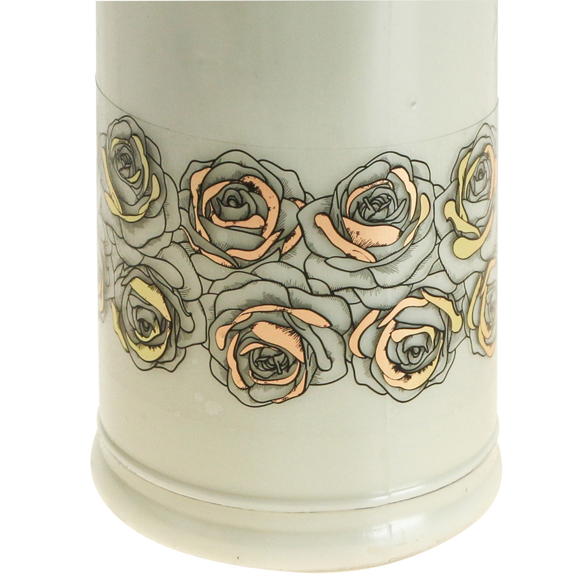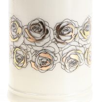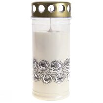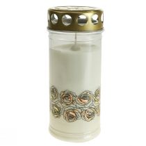 The grave candles in white and gold with rose pattern are also available in other sizes.