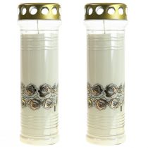 Grave candles white roses mourning light memorial light Ø7cm H18cm 90h 2pcs