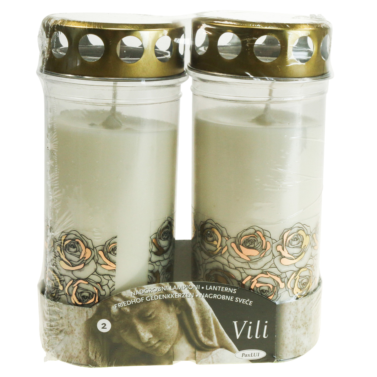 - Product name: Grave candles white roses mourning light memorial light Ø7cm H18cm 90h 2pcs