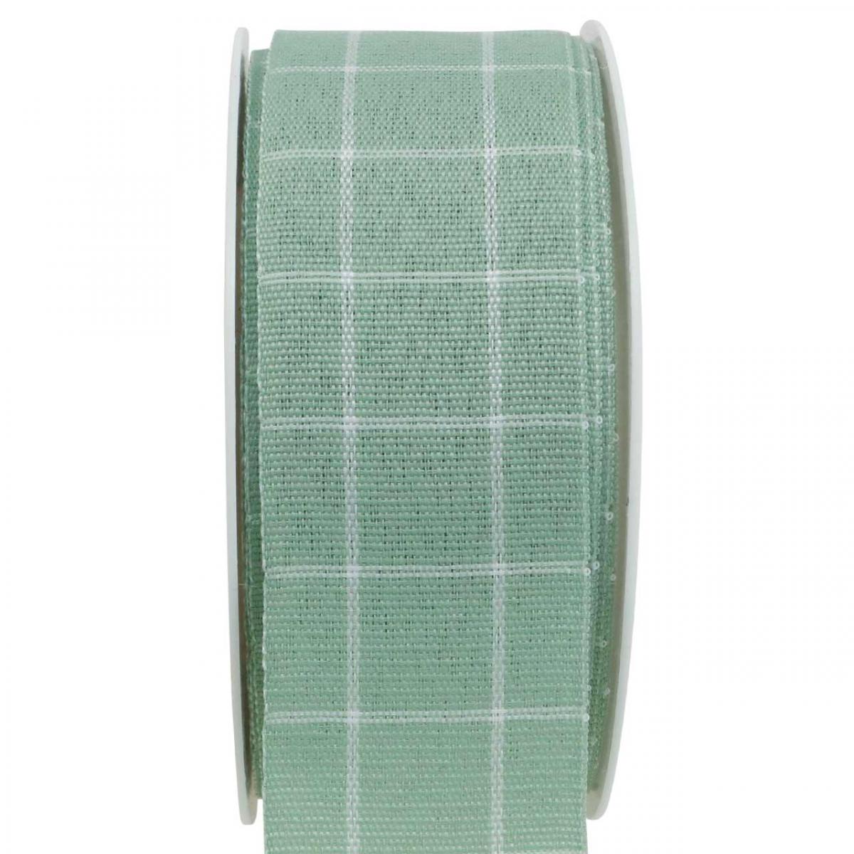 Green pastel checkered gift ribbon, decorative ribbon, 35mm wide, 20m long