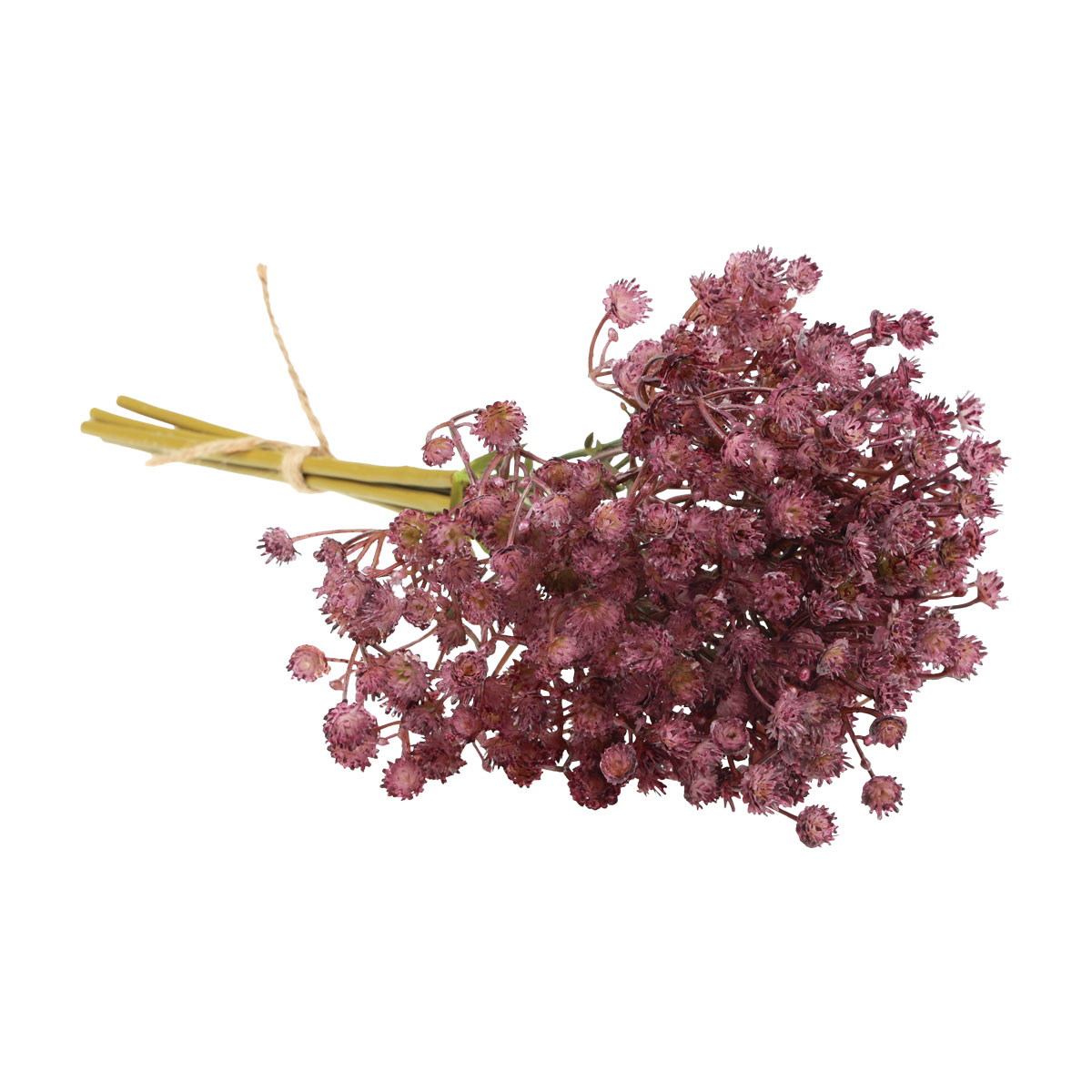 The artificial flowers come with a length of approximately 35 centimeters in a bunch of five stems of purple gypsophila. Each flower stalk branches out multiple times and bears a multitude of flowers at the top. Inside the stem there is a flexible metal core so that you can easily shape the Gypsophila according to your decorative ideas.