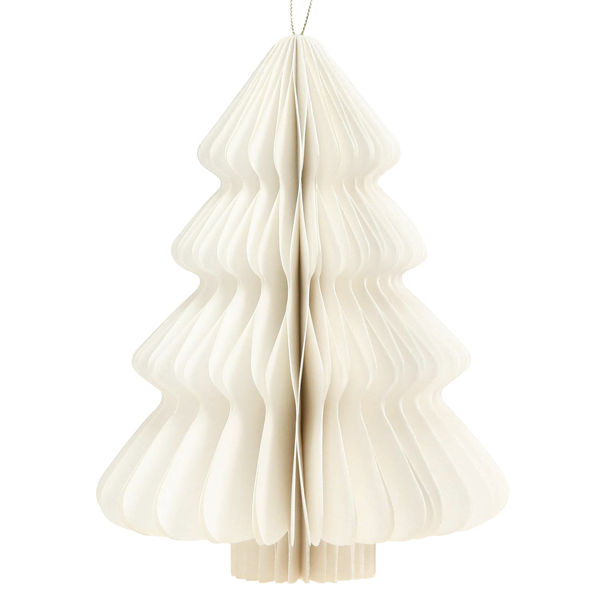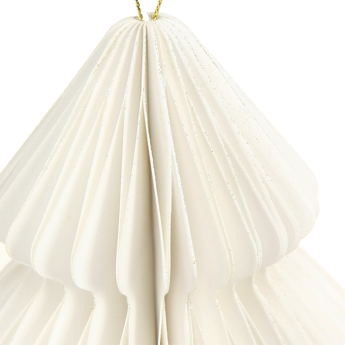 Paper Christmas tree in white: hanging decoration for stylish holidays with silver glitter
