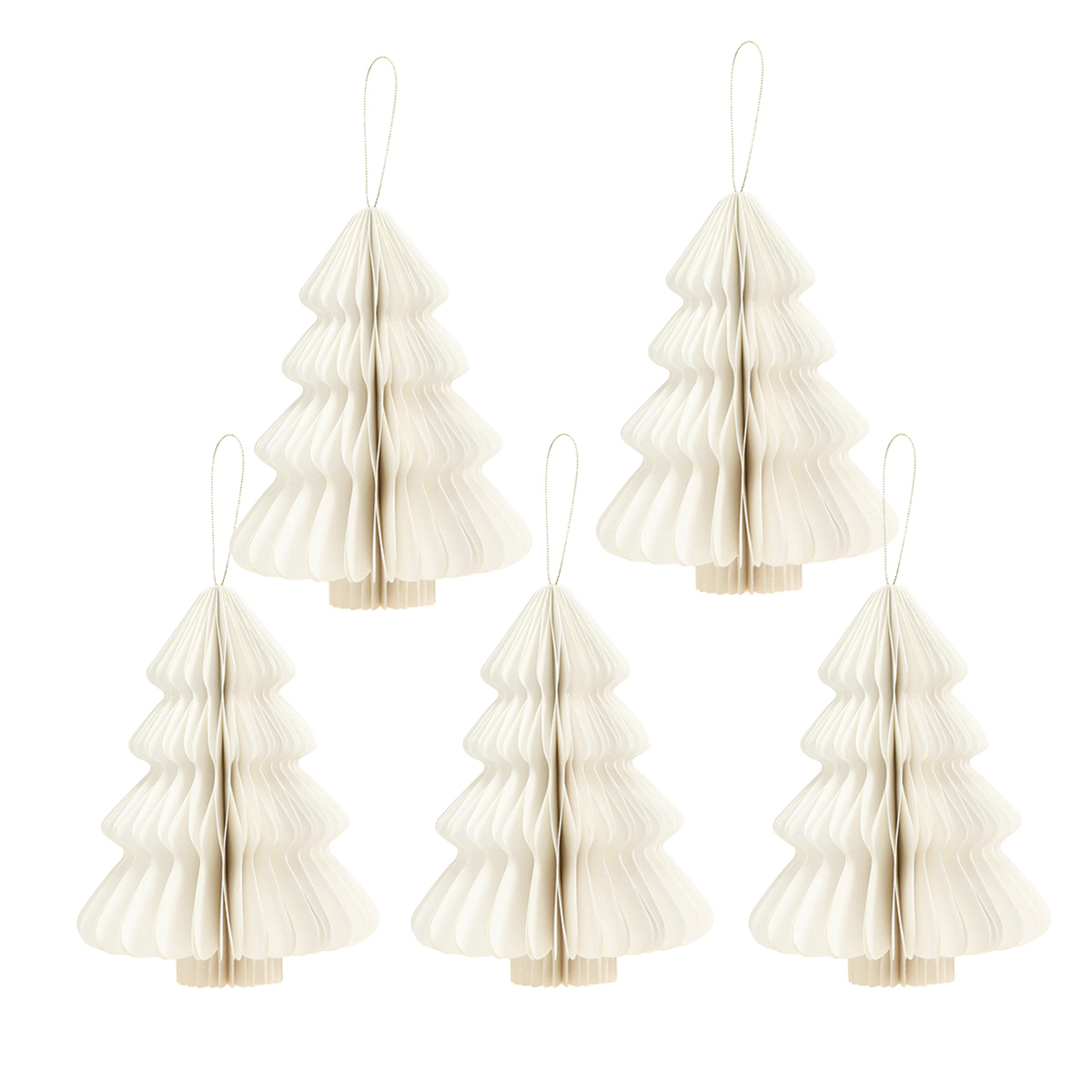 Hanging Christmas tree decoration, paper, white and silver, 20cm, set of 5