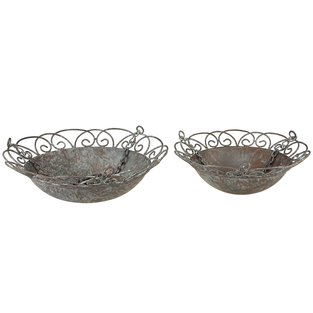This metal hanging decoration is a chic bowl for hanging - and comes in a pack of two. The brown color with the white washed surface gives the decorative bowl the finishing touch.