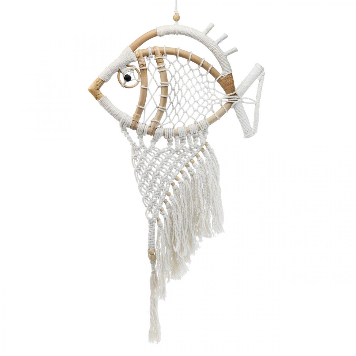 If you are looking for a simple yet eye-catching maritime decoration, then the macrame fish is definitely the right choice! The decorative fish for hanging has a basic shape that has been shaped from wood. The different components of the wooden fish decoration are designed with different macrame knotting techniques.