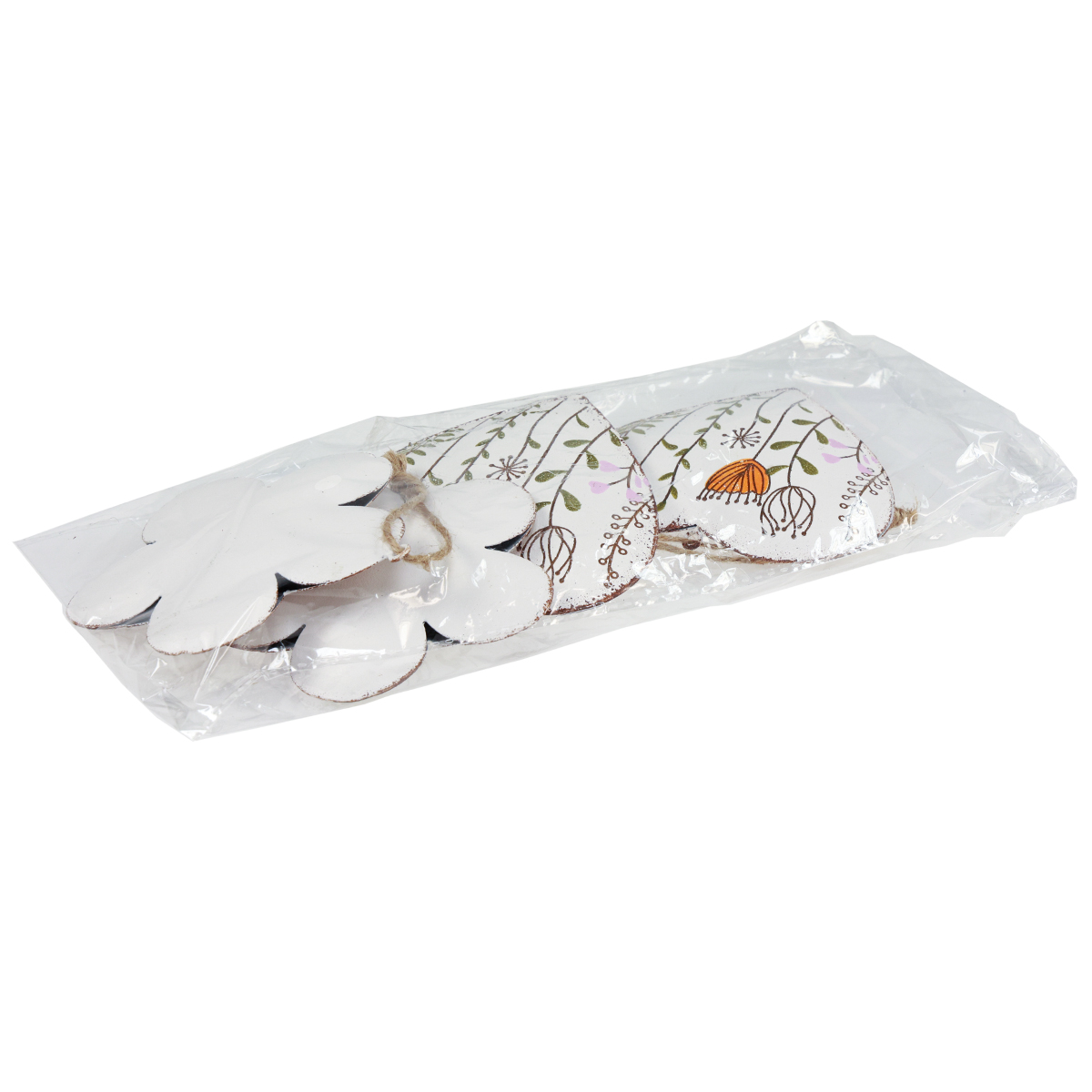 Product name: Hanging Decoration Metal Decoration Hearts and Flowers White 10cm 4 Pcs