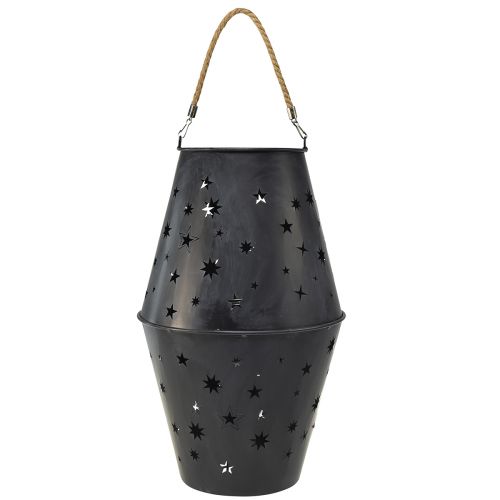 The decorative anthracite metal lantern is a real decorative highlight. The anthracite-colored metal, decorated with a star pattern, not only gives this lantern an atmospheric play of light, but also a modern touch. The conical or tapered structure, which becomes narrower towards the top, gives the lantern its classic lantern shape and looks extremely decorative both hanging and standing.