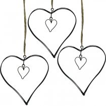 Decorative heart pendants with butterflies for spring decoration, 10.5cm, 3 pieces
