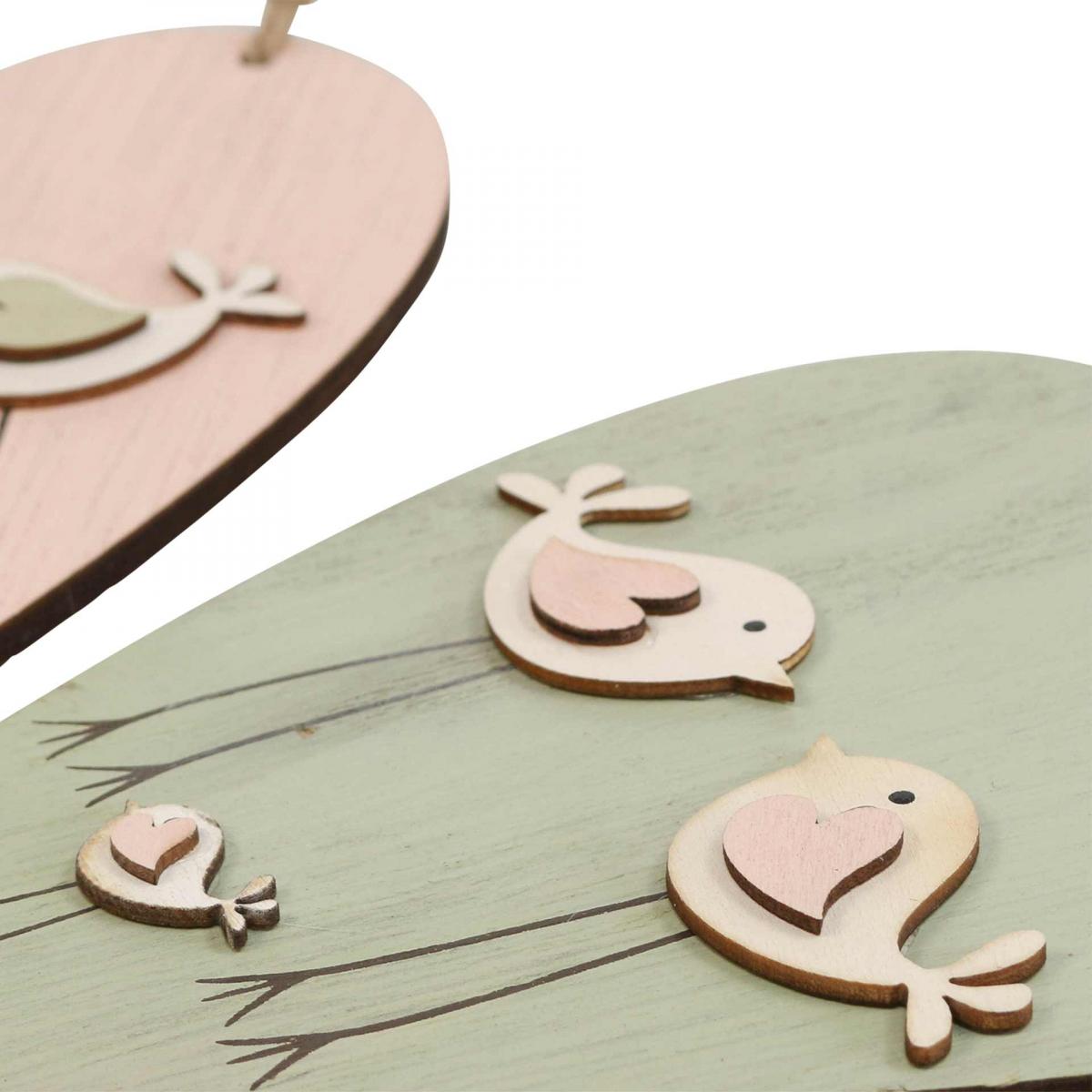 You will receive the decorative hearts ready to hang up with a jute cord in a practical set of 6 pieces. The set includes three wooden heart pendants in green and three in pink.
