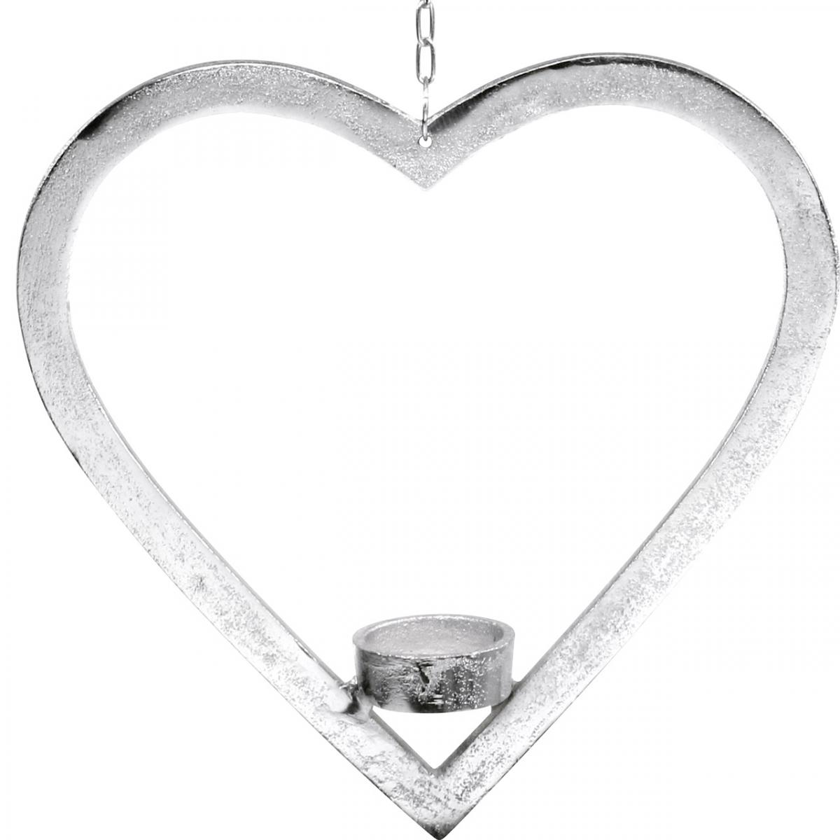 Heart to hang, tealight holder for Advent, wedding decoration metal silver H24cm