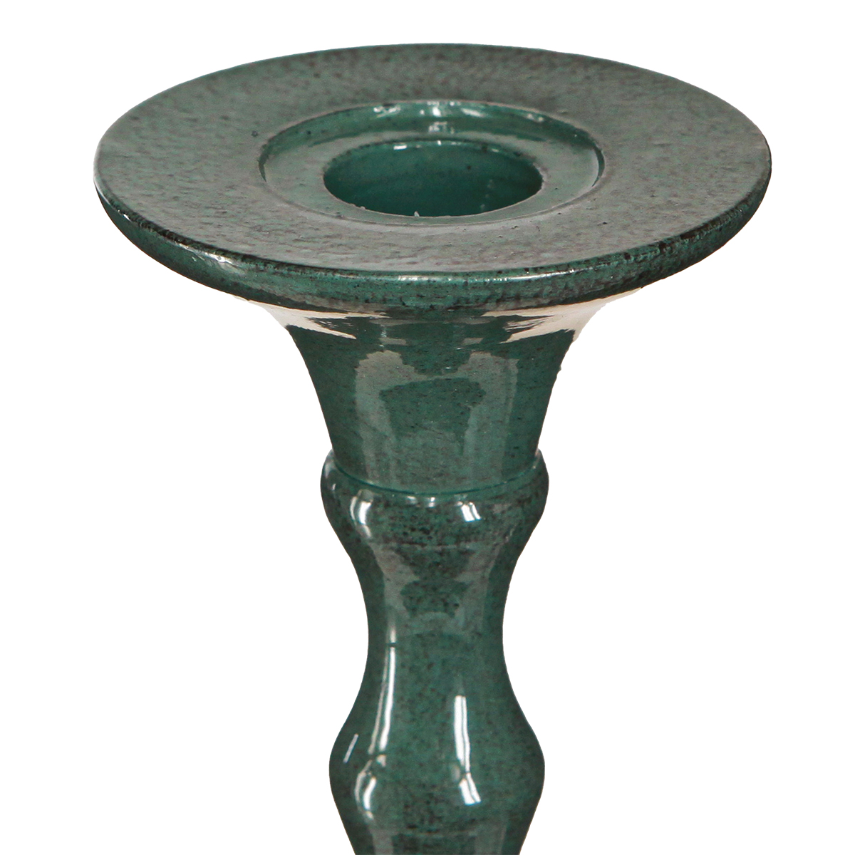 - Tall candlestick in green with vintage influences