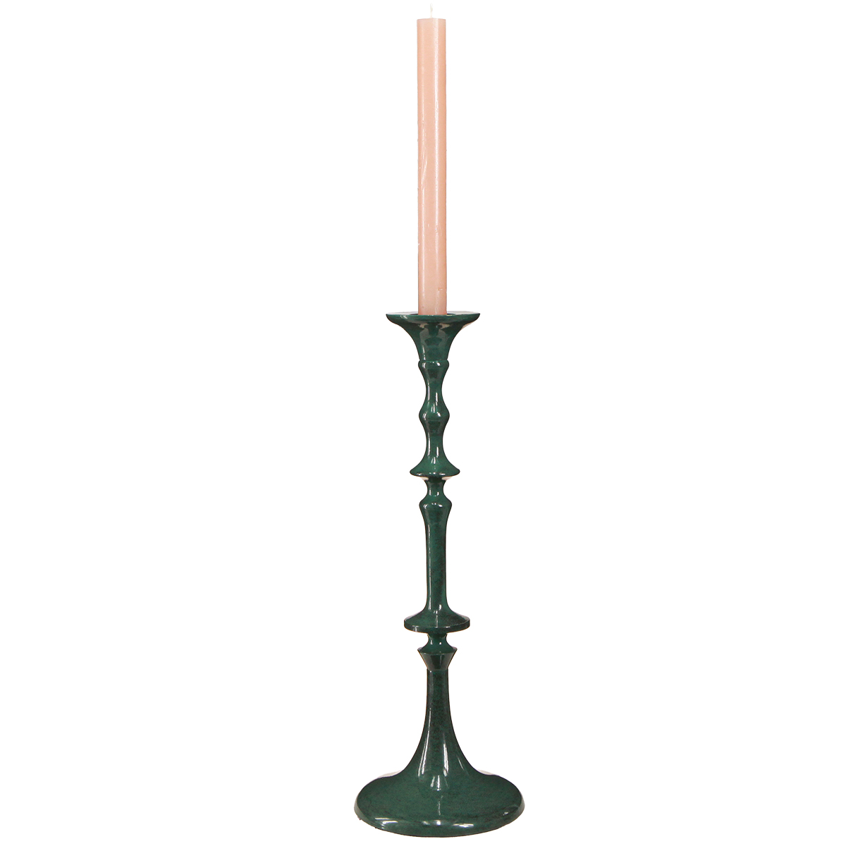 - Tall candle holder in green with a ceramic look
