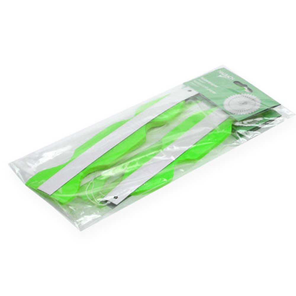 The green decorative flowers made of honeycomb paper are offered in a set of 4 and, when unfolded, have a diameter of around 40 centimeters each, with the total length including the loop being around 52 centimeters. When folded, the flowers are approximately 22 centimeters long.