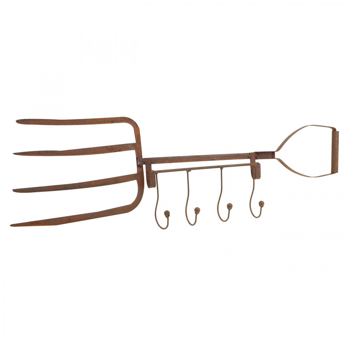 Product name: Hook strip patina decoration pitchfork garden decoration 4 hooks 62cm