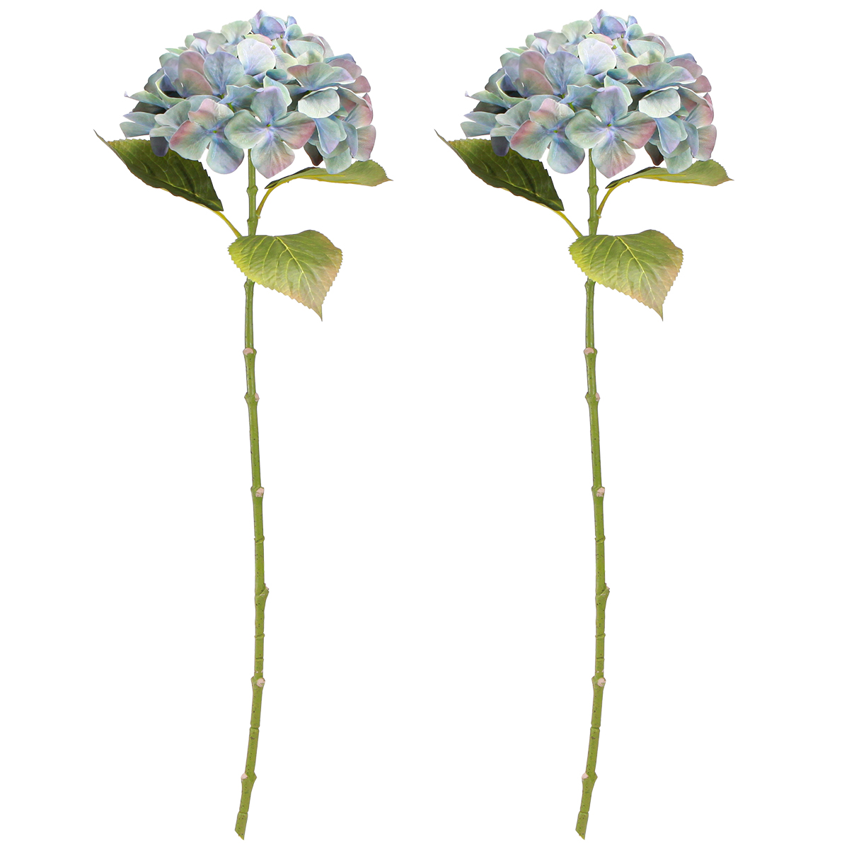 With the artificial hydrangea with blue petals (Hydrangea) you bring a touch of timeless elegance to your home. This realistically designed decorative hydrangea impresses with its large flowers that shine in a fascinating blue. Some of the flowers have subtle green and purple touches, which give them a natural look. The brown-green stem has three large leaves with a slightly brownish edge and is characterized by leaf nodes that are amazingly accurate to a real hydrangea. These decorative artificial flowers are the perfect choice for anyone who wants to beautify their surroundings with minimal maintenance - whether in the living room, in the office or as a stylish table decoration for summer and autumn occasions. Available in pairs, the artificial hydrangeas invite you to be creative and give any environment a touch of natural beauty.