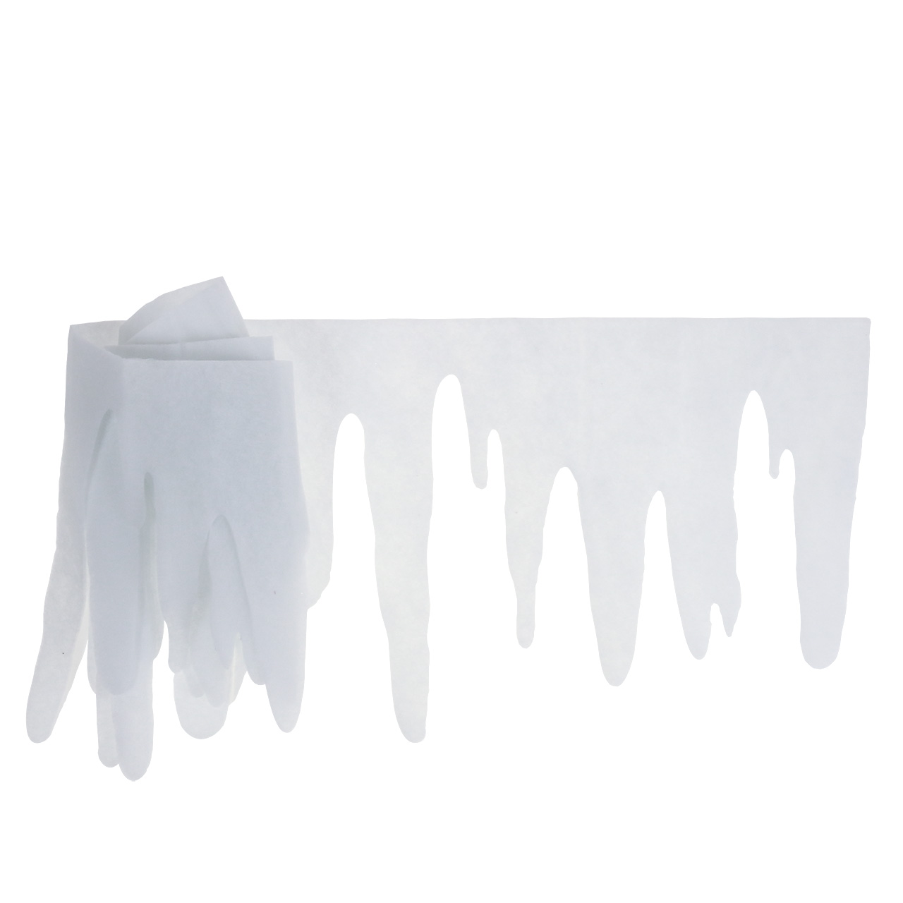 The decorative ice also gives tables, hanging shelves or the ceiling the look of a natural icicle edge. So you can decorate your sales rooms wonderfully winterly and get your customers in the Christmas mood. The local Advent decoration will also be even more fun if it is decorated with the beautiful decorative icicles. The icicle tape can also be easily cut to size with scissors and cut to the desired length. So you can make many shorter ones out of a long decorative border. Especially in the children's room, cute fabric icicles that hang down from all sorts of protrusions can create a child-like winter flair.