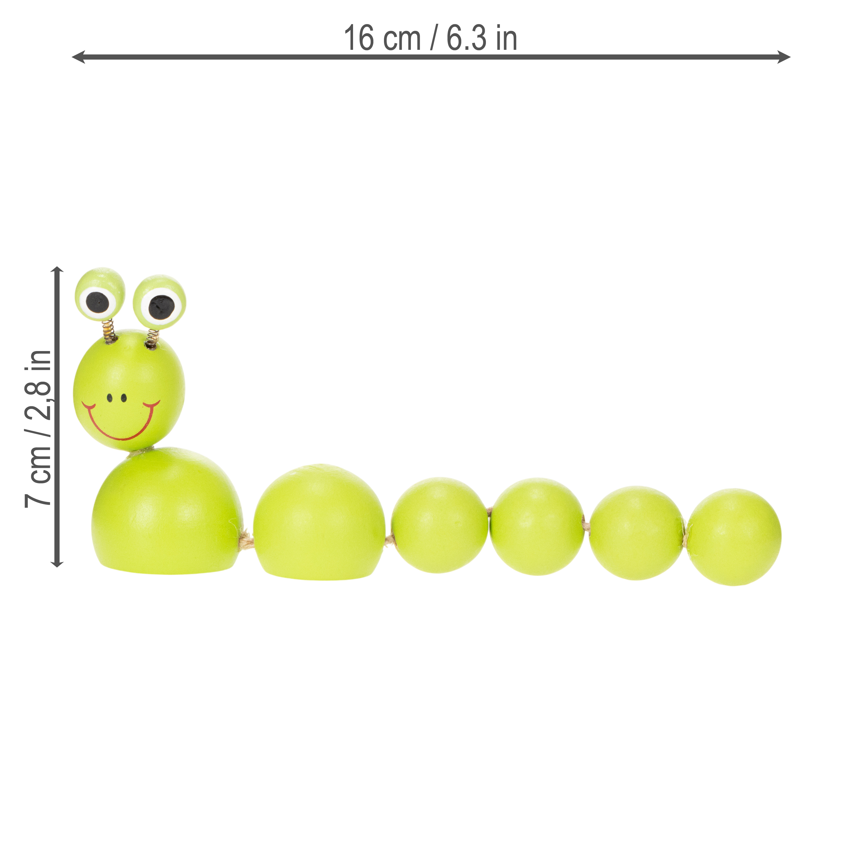 With a playful wink and vibrant green color, this caterpillar decoration brings joy and a touch of nature into your home! Have you ever considered how simple it could be to liven up a room with ease? These six decorative wooden caterpillars, each 16 centimeters long, add charm to windowsills, bookshelves, or playrooms. Playful and creative at the same time – and absolutely high-quality and durable. Perfect for anyone who wants to enrich their living space with a cheerful eye-catcher without sacrificing naturalness. The colorful wooden caterpillars impress with their charming design and blend harmoniously into a variety of decorating styles – from modern Scandinavian design to cozy country style.