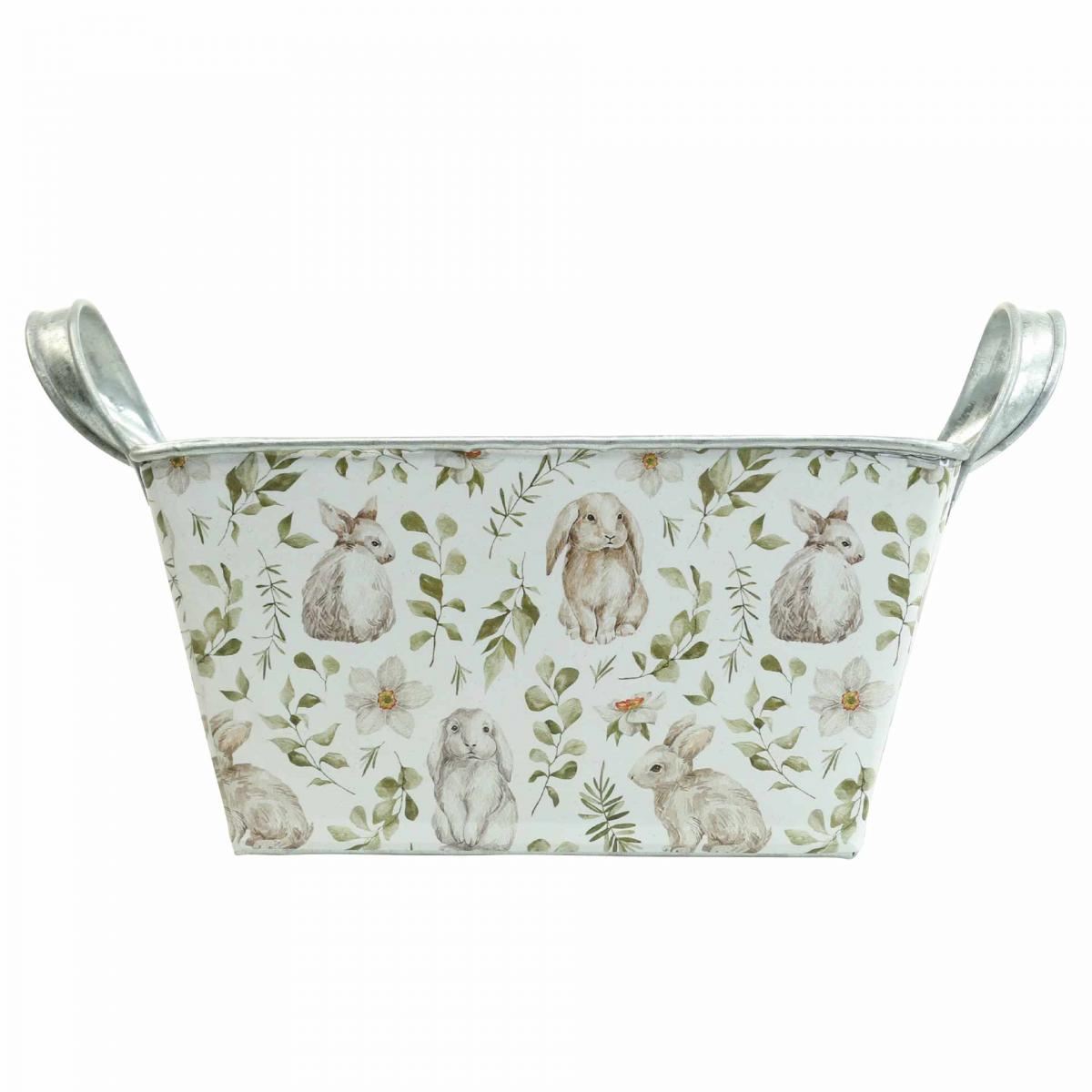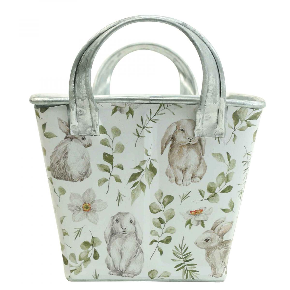 The flower box also shimmers on the inside with the most beautiful silver sheen of the zinc pattern. The print with the rabbit motif is glued to the outside of the flower box. This gives the zinc pot its seasonal charm for spring decorations.