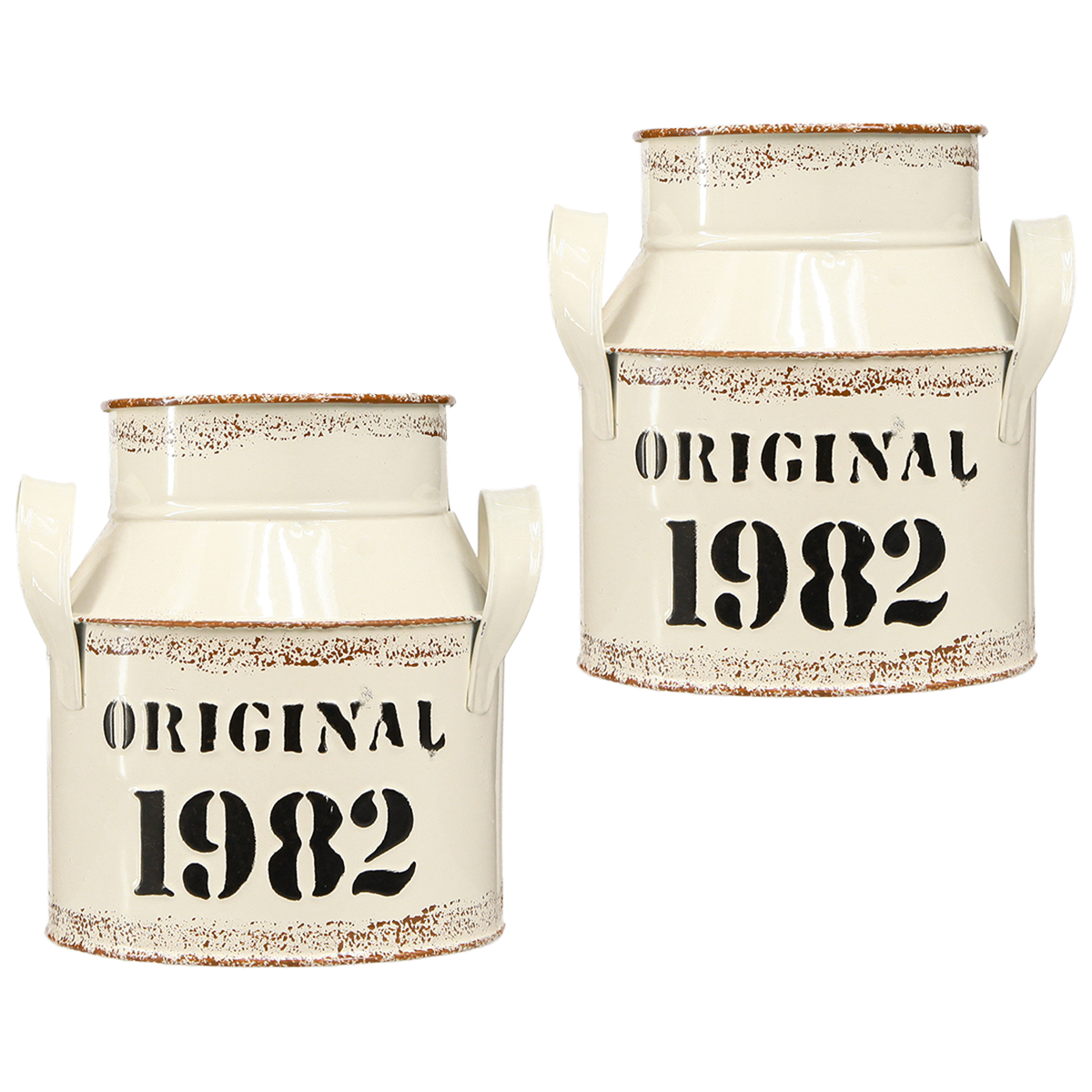 Jug Metal Decoration "Original 1982" Cream Rust H16cm 2pcs