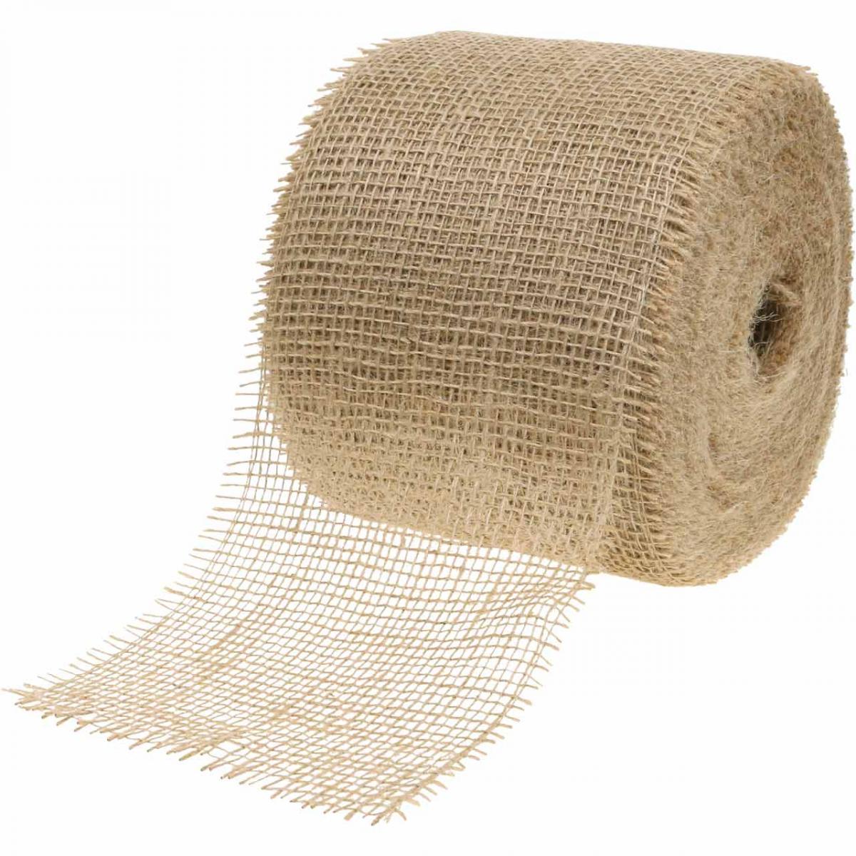 The natural jute ribbon is formed into a roll and tied into small meshes. A small, white cotton thread was attached to the upper and lower edge for stability. The length of the jute ribbon is 40 meters and has a width of about 15 centimeters. In this way, you can also spruce up your furniture such as a small chest of drawers or a sideboard and give it a new shine. But even if you like to make dolls and cuddly toys yourself, you can use this tape to make clothes with it, for example.